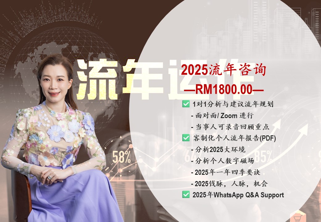 Sale! Previous Product Next Product 2025流年咨询( 包含流年报告) RM2,400.00 Original price was: RM2,400.00.RM1,999.00Current price is: RM1,999.00. 2025流年咨询( 包含流年报告) quantity Add to cart Category: Uncategorized Related products Quick View Quick View Quick View Uncategorized人文商数学院 付款 RM6,900.00 Add to cart Quick View Quick View Quick View Uncategorized专业课程 职业培训 – 订金报名 RM1,999.00 Add to cart Quick View Quick View Quick View Uncategorized《用数字学搞好关系》工作坊 RM149.00 Add to cart
